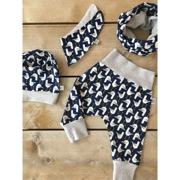 Je nach Verfügbarkeit bieten wir passend zur Hose Mütze, Schal und Sabberlatz an.